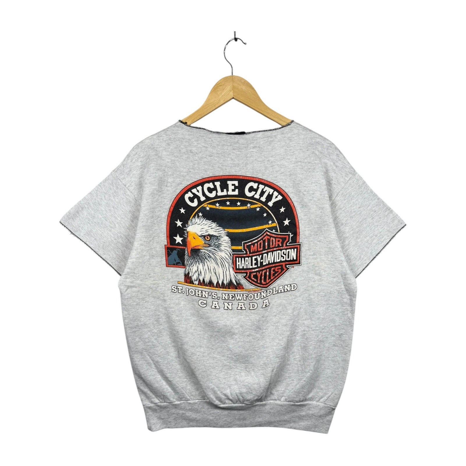 Vintage Harley Davidson Eagle Graphic Short Sleeve Sweatshirt